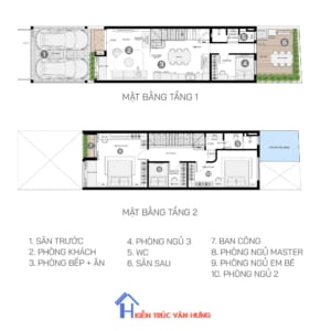 Khám phá thiết kế nhà 2 tầng 5 phòng ngủ từ Kiến trúc Văn Hưng,...